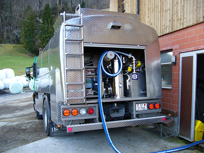 Mit unseren modernen Milchsammelwagen transportieren wir die Frischmilch von den Bauernhöfen in die Käserei oder zu den Grossverarbeitern. Das Transportvolumen der Milch kann bis zu 25'000 Liter betragen.Unser gut geschultes Personal arbeitet unter strengsten Hygiene-Richtlinien, um eine gute Milchqualität zu garantieren.Die Milchsammelwagen sind mit modernster Technik ausgerüstet um eine einwandfreie Probenahme und Datenerfassung zu garantieren. Die Milchannahme sowie die Probenahme sind amtlich geeicht.Die Daten werden stets gesichert übermittelt und ermöglichen eine lückenlose Rückverfolgung des Produktes und eine korrekte Abrechnung.