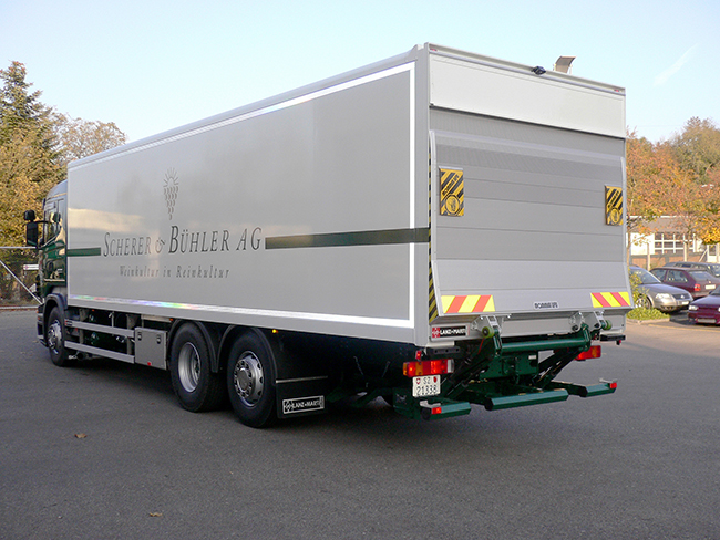 Stückgutfahrzeuge mit Kasten für den Transport von Paletten. Die Fahrzeuge sind mit Hebebühne ausgestattet.